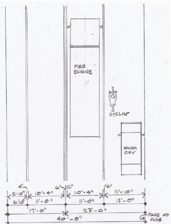 at the bike/ped program) was for, from left to right, a 6 foot bike lane, a 11 foot travel lane,